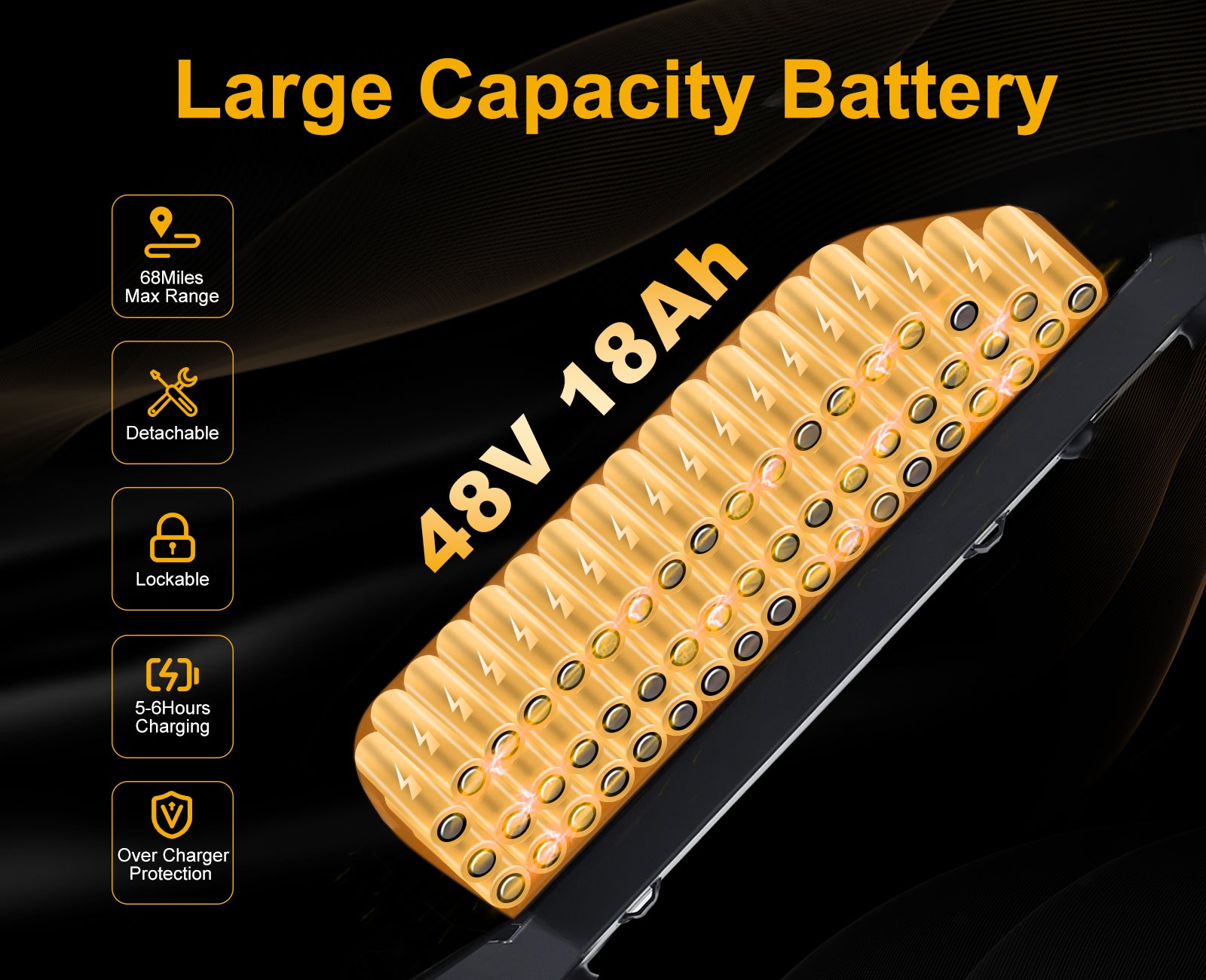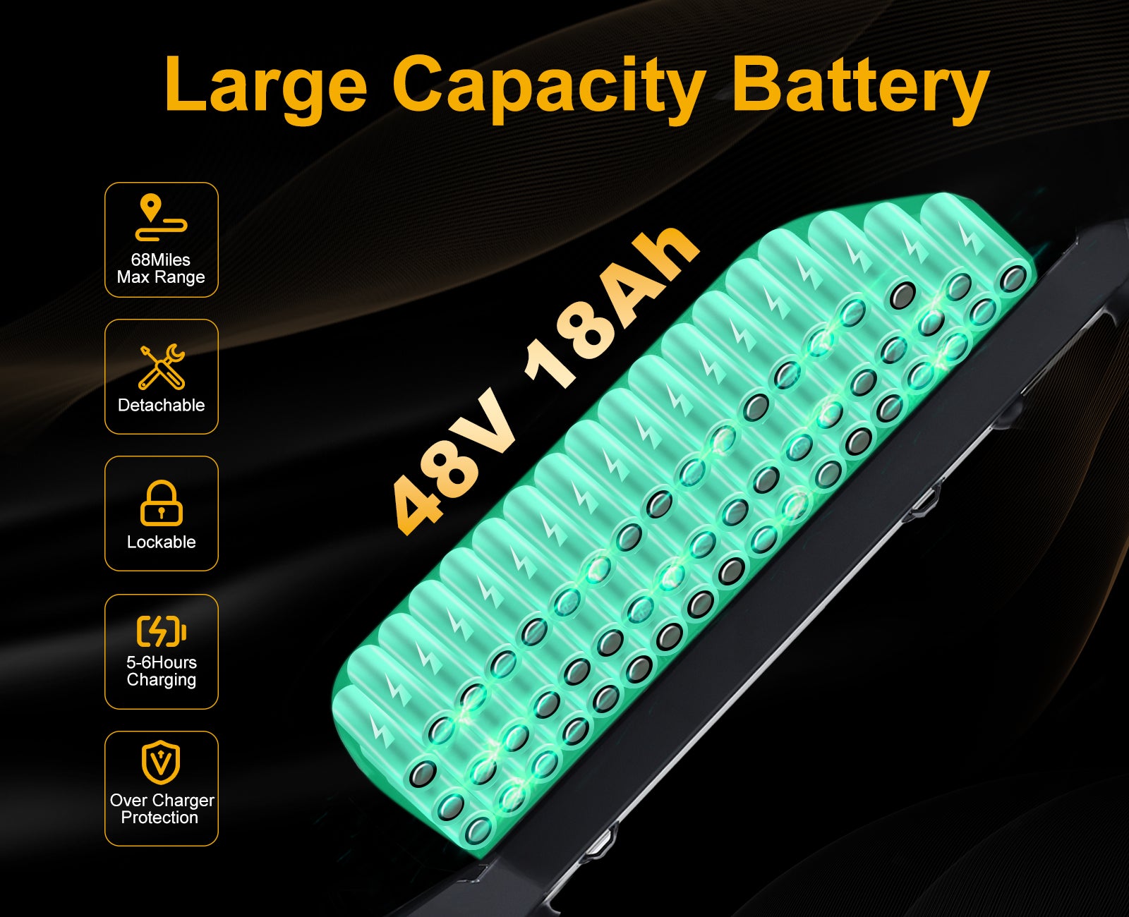 • 🔊Powerful Brushless 1500W Peak Motor&48V18Ah:The Vynxet electric bike with a 750W Brushless motor (peak 1500W),a large capacity 48V18Ah battery,it delivers strength, stability, and speed up to 32MPH.So you can reach your destinations swiftly, regardless of conditions.the long-distance for Vynxet ebike commutes or travel are no longer a challenge!
